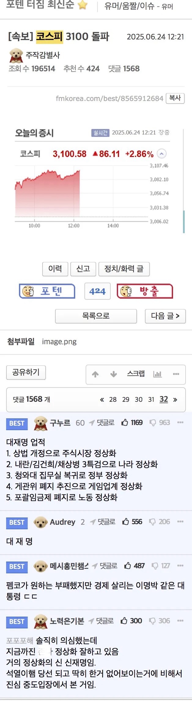 작성자데보라 작성시간 25.06.24 이명박? 댓글부대왕 이명박 확실하긴하네요