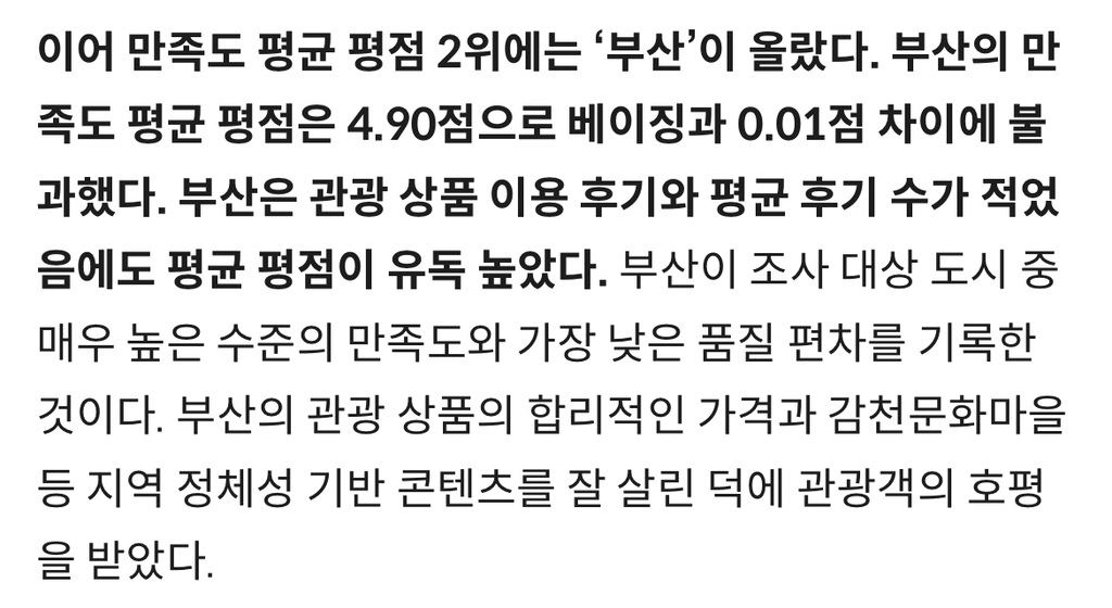 으로 부산이 이 중 평가수는 제일 적었지만 점수는 유독 높게 나왔다고 함