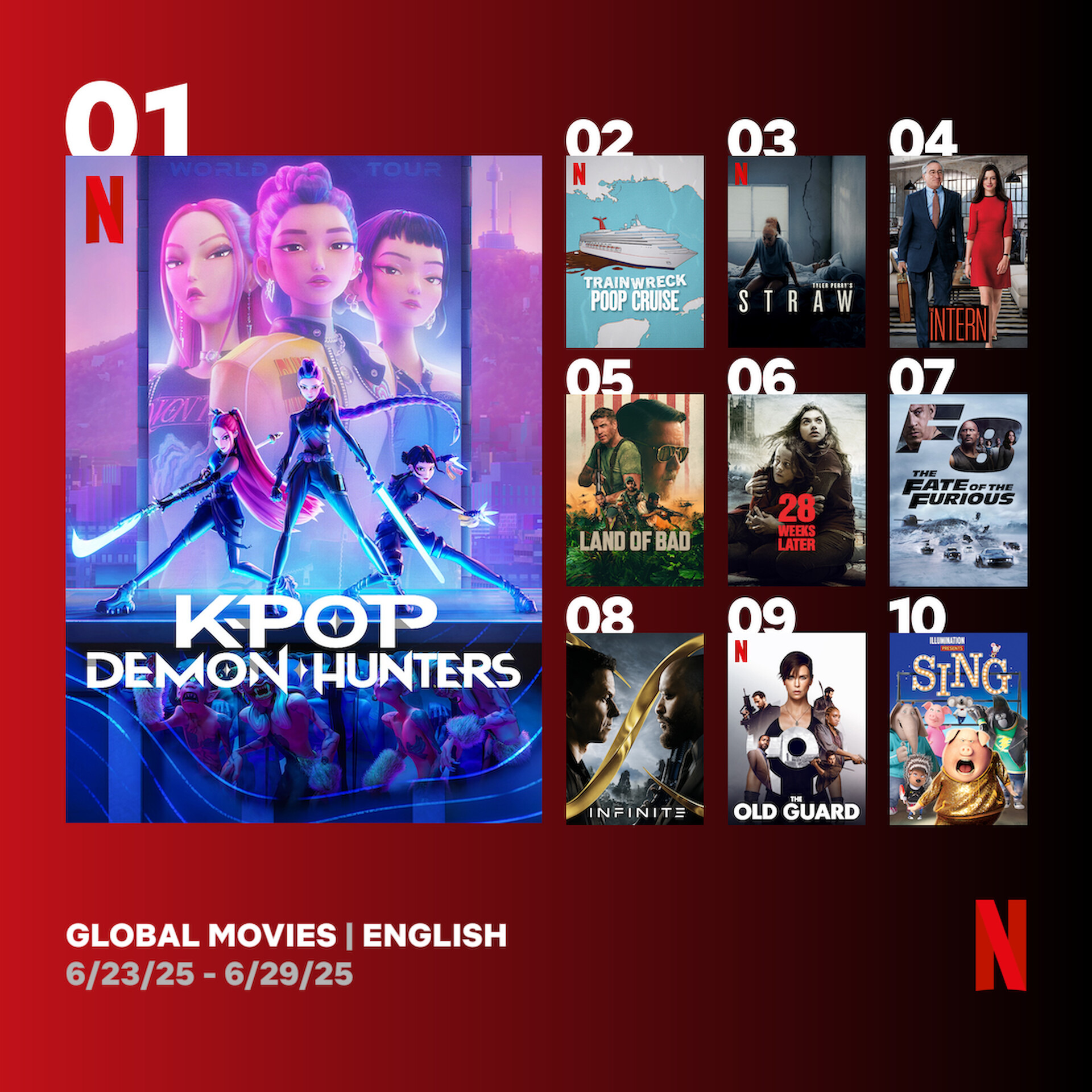 6월 23-29일 넷플릭스 톱10 차트가 공개되었는데, <오징어 게임 3>와 <케이팝 데몬 헌터스>가 모두 1위를 차지했습니다.