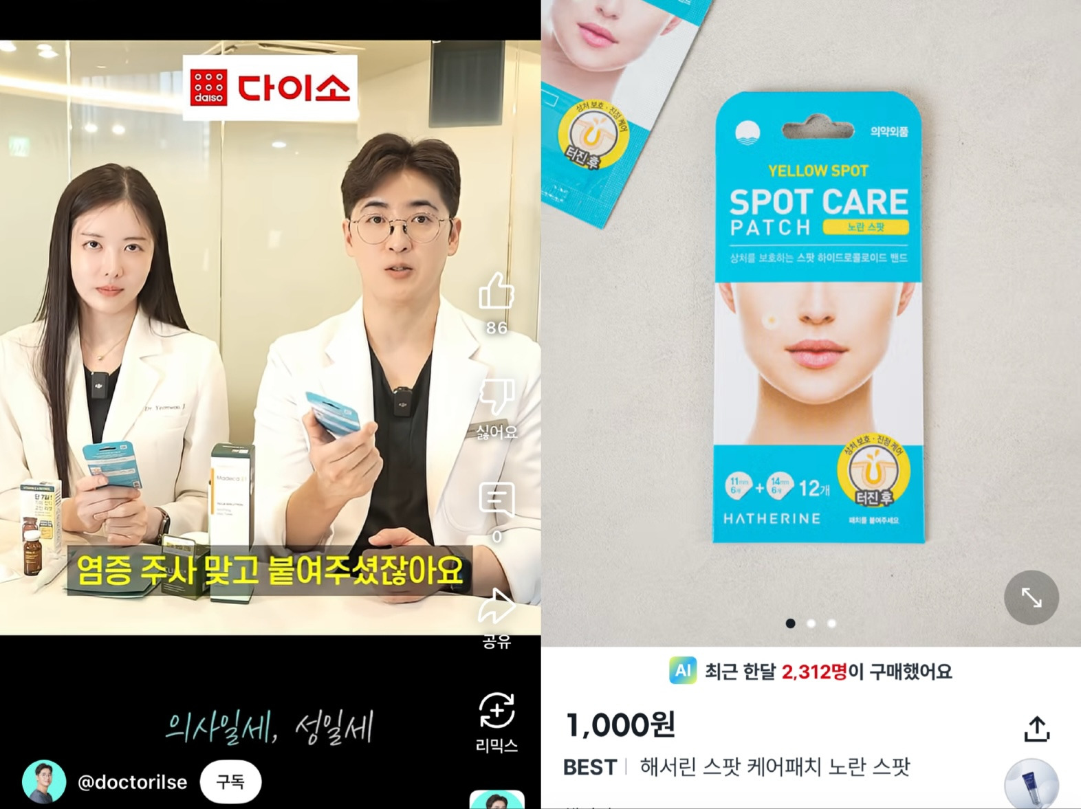 “다이소 개쩐다”(진짜 영상에서 이렇게 말함)
