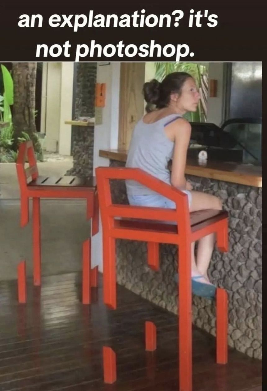 [스크랩] 합성이 아니라는 실제 의자.jpg 작성자Jason-Kidd|작성시간25.11.08|조회수11,260 목록 댓글 5 글자크기 작게가 글자크기 크게가 아니 아무리 봐도 이해가 안 가는데..출처:페이스북 다음검색 스크랩 원문 : 이종격투기 현재 게시글 추가 기능 열기 북마크 공유하기 신고 센터로 신고 댓글 댓글 5 댓글쓰기 답글쓰기 댓글 리스트 작성자디트로이트 | 작성시간 25.11.08 농구 골대 같은 건가 작성자沙野 | 작성시간 25.11.08 온전한 다리 하나가 바닥에 튼튼하게 고정되어 있나 보죠. 작성자가즈나이트1 | 작성시간 25.11.08 의자가 온전한 철이라면 가능? 작성자와따따뚜겐 | 작성시간 25.11.08 무게를 많이는 지탱못할것 같네요. 작성자exerciser | 작성시간 25.11.08 투명한 다리로 연결된것 같지않나요? 댓글 전체보기