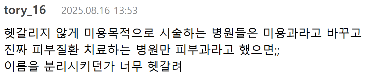 작성자웃겨라 동해야 작성시간 25.11.25 한 눈에 알수있게...피부과, 미용과, 피부미용과 이런식으로 구분해서 표시 하는게 ..