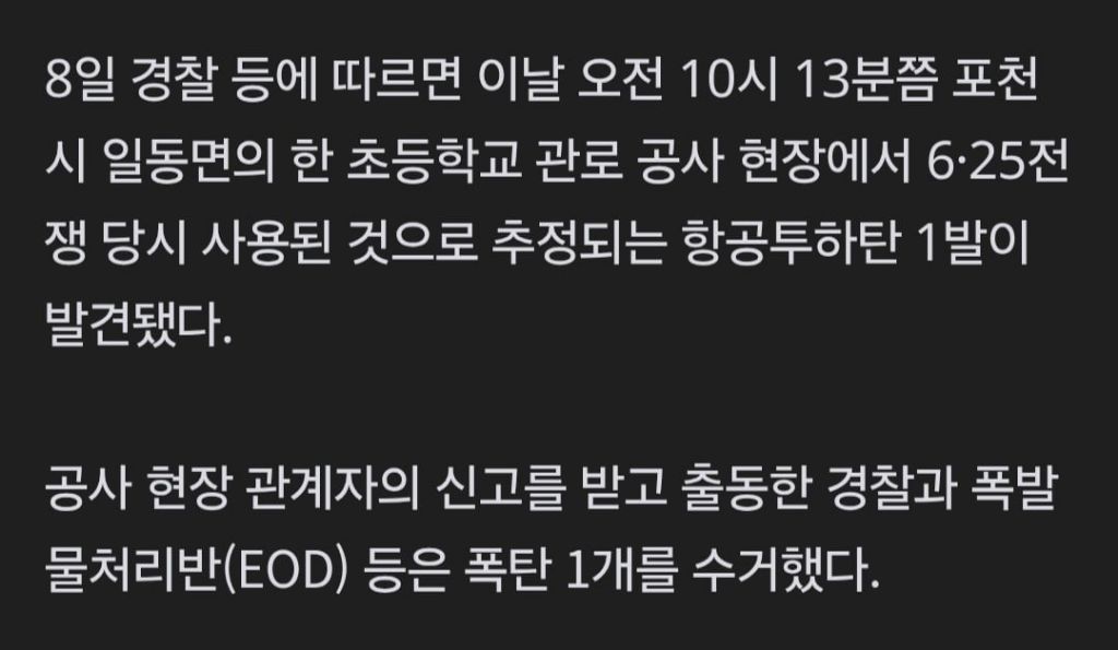 답댓글 작성자불타는 똥꾸 작성자 본인 여부 작성자 작성시간 25.12.08 떨어진게 아니라 6.25 때의 탄으로 추정 된대요