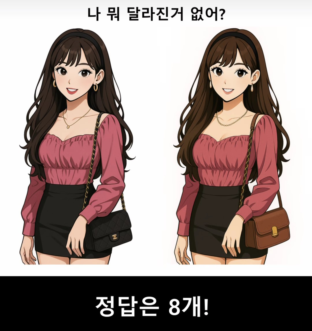 작성자my同風 작성시간 25.12.31 가방, 목걸이, 귀걸이, 머리색 양쪽에 4개씩 총 8개