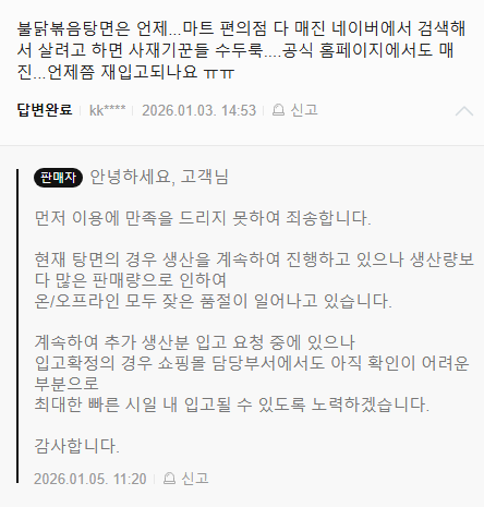 아마도 불닭미역탕면 유행 때문인듯