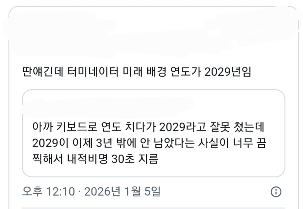 작성자ThanksReggie 작성시간 26.01.07 요즘 AI랑 로봇이 발전하는거보면 진짜 터미네이터가 올지도 모르겠다는 생각이 드네요..