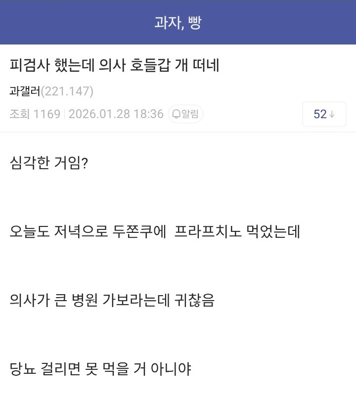 작성자씩스맨 작성시간 26.01.31 그래라, 그럼. 당뇨병 걸려서 시력 급저하에 잇몸 약해져서 이빨이 갑자기 쑥 빠지고 하면 이미 때는 늦은 거니까. 그때 가서 먹고싶은 거 먹으면서 살아야지! 해봐야 늦은 거란다.