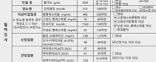 피검사로 알 수 있는 수치가 죄다 높으네요 이런건 첨 봄