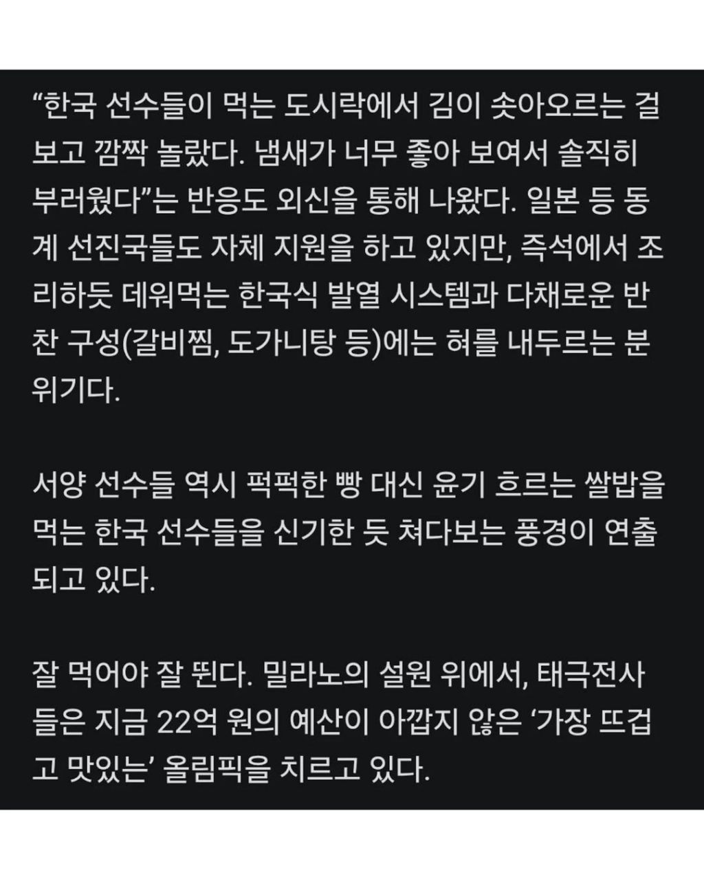 [스크랩] 대한민국 올림픽 선수단 도시락 클라쓰 작성자얼음귀공자|작성시간26.02.09|조회수5,090 목록 댓글 12 글자크기 작게가 글자크기 크게가 이미지 출처: 인스타그램 다음검색 스크랩 원문 : 이종격투기 현재 게시글 추가 기능 열기 북마크 공유하기 신고 센터로 신고 댓글 댓글 12 댓글쓰기 답글쓰기 댓글 리스트 작성자이백세키드 | 작성시간 26.02.09 쩌네요! 힘내십시요!! 작성자이사장 | 작성시간 26.02.09 역시 한국인은 밥심!!! 작성자solution | 작성시간 26.02.09 화이팅!! 대한민국!! 작성자legend#31 | 작성시간 26.02.09 멋지네요!!! 작성자[NSNL]Delta Center | 작성시간 26.02.09 캬 댓글 전체보기