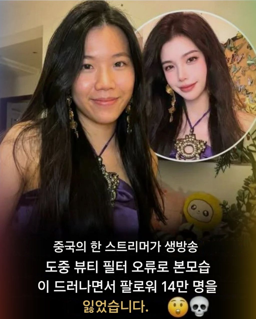 인터넷 생방송 도중 필터가 갑자기 풀려서 얼굴이 공개되고 팔로워 14만 명 날라감