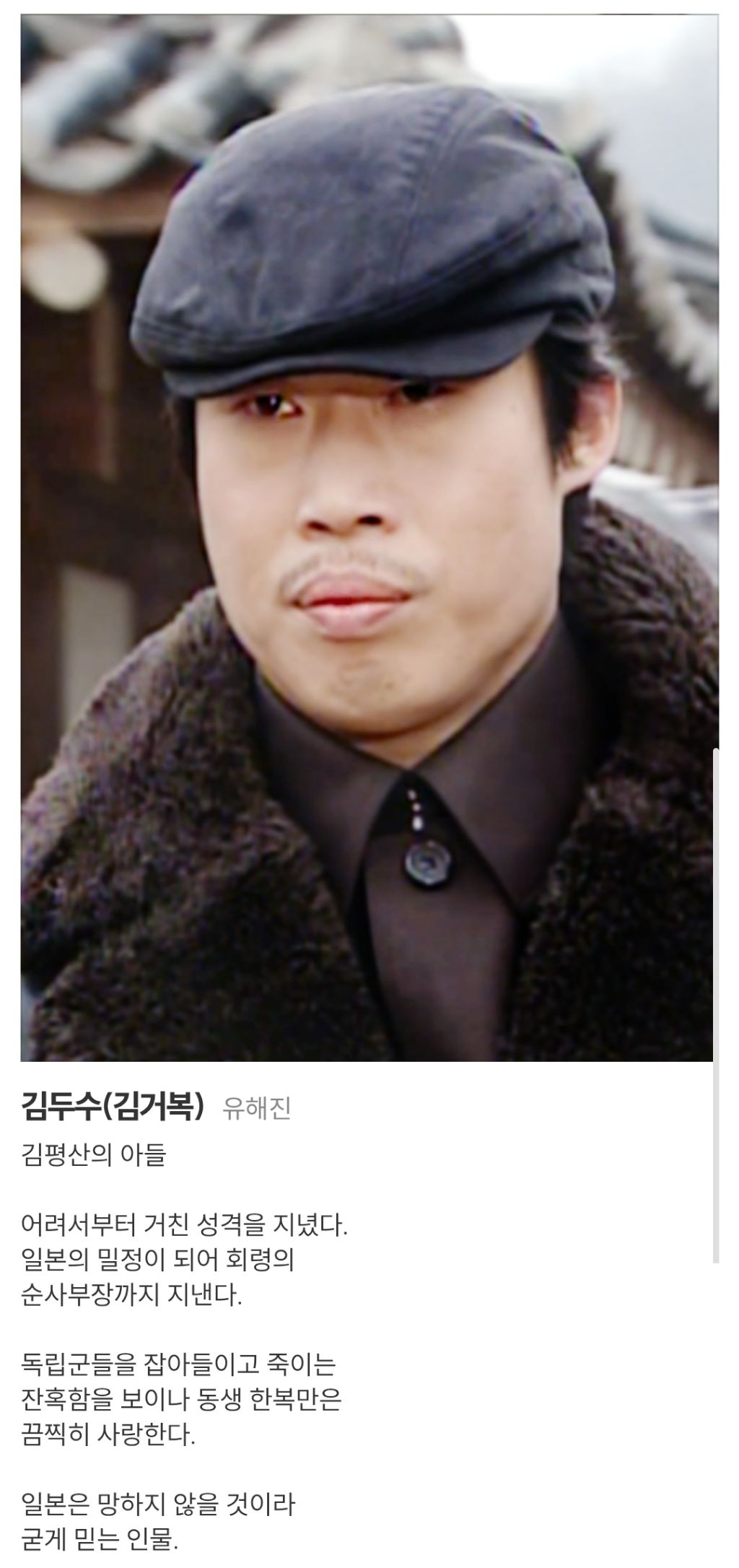 드라마에서 1인 2역으로 아버지와 아들을 모두 맡아 악역 기가막히게 함