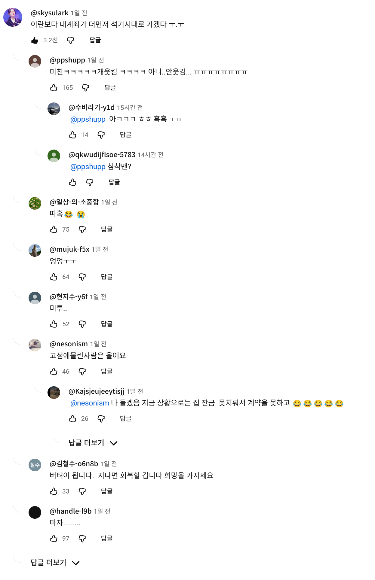 트럼프 이란을 석기시대로 만들겠다에 대한 댓글 작성자호나섹 장|작성시간26.04.04|조회수2,177 목록 댓글 1 글자크기 작게가 글자크기 크게가 다음검색 현재 게시글 추가 기능 열기 북마크 공유하기 신고 센터로 신고 댓글 댓글 1 댓글쓰기 답글쓰기 댓글 리스트 작성자mourning33 | 작성시간 26.04.04 new 커티스 르메이 따라한 건데, 이란 석기시대 만들기 전에 지들 탄약 재고 오링이랑 전투기 떨어질 거 걱정해야죠. 한 달 이상 120프로로 속띠하는 중이라 과부하 걸릴 거고, 그 결과물이 오늘 전투기 격추로 나온 거고요.11월 중간 선거 탄핵선 나올텐데, 그 전에 한국 윤가마냥 계엄 저지를까 두렵네요. 댓글 전체보기