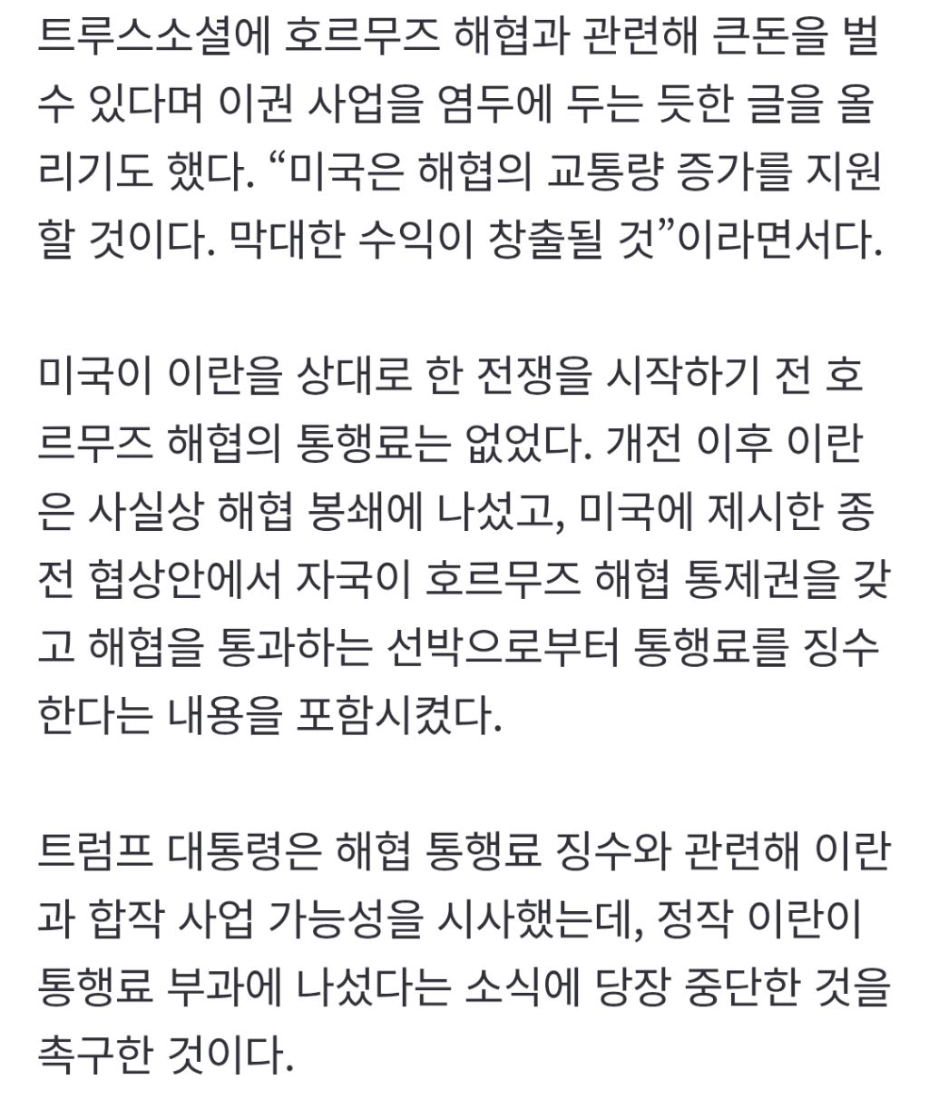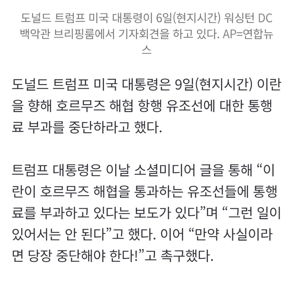 작성자mourning33 작성시간 26.04.10 잘 아시겠지만. 공해에서 자유항행을 방해하는 통행료를 겆는 거 자체가 국제법 위반이죠.
