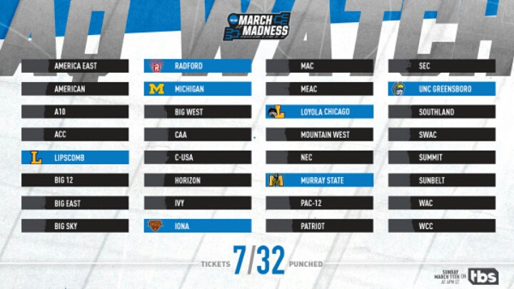 컨퍼런스 챔피언외 NCAA 토너먼트 진출할 나머지 팀들은 이번주 일요일 저녁 6시 TV로 생중계 되는 'Selection Sunday'때 발표될 예정.