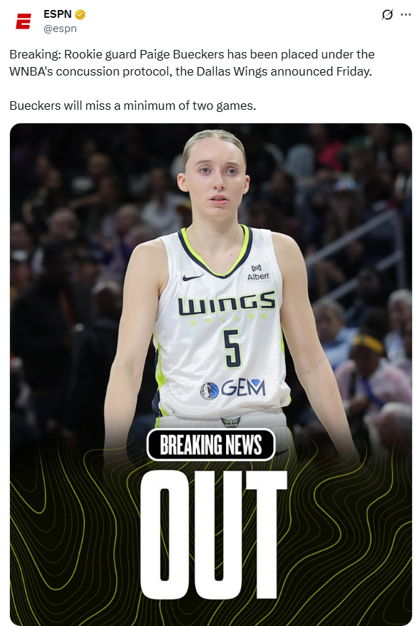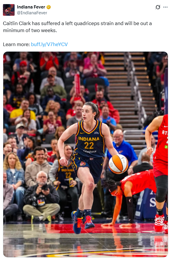 케이틀린 클락은 대퇴사두근 염좌로 최소 2주 결장으로 최근 3경기 결장 중