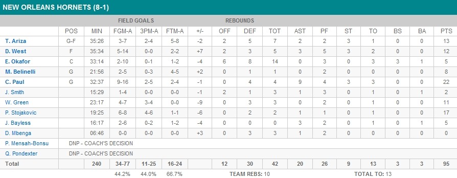 크리스 폴 : 22점 9어시 3스틸 / 스토야코비치 : 17점(6-8) / 오카포 : 14리바 3블록 / 아리자 : 13점 7리바 3스틸