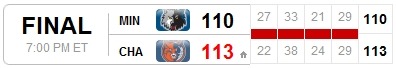 - 지난 유타와의 홈경기에서 아쉽게 1점차 패배를 당했던 샬럿. 이번엔 미네소타를 맞아 3점차 짜릿한 승리를 거뒀네요. 올시즌