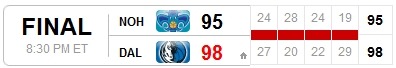 리드까지 가져갔지만 중요한 순간마다 터진 댈러스의 3점슛과 테리&노비츠키의 득점으로 힘겨운 역전승을 거뒀네요. 뉴올은