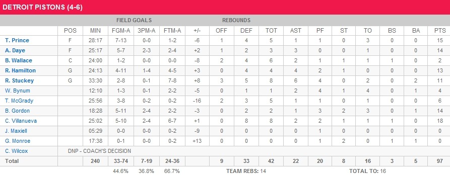 빌라누에바 : 18점 8리바 1스틸&블록 / 고든 : 14점 2스틸 / 스터키 : 11점 8리바 6어시 / 프린스 : 15점 5리바