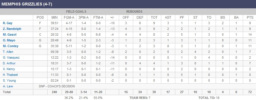 마크 가솔 : 14점 8리바 1스틸 / 마이크 콘리 : 11점 8어시 1스틸 / 메이요 ; 11점 1스틸 / 게이 : 9점 9리바 1스틸 2블록