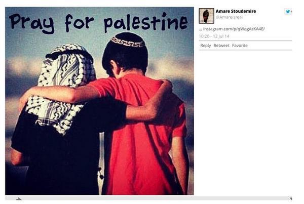 스타더마이어 Amar'e Stoudemire는 14년 7월 인스타그램에 “Pray for Palestine."란 글이 담긴 사진을 올렸다가 곧 삭제했다.