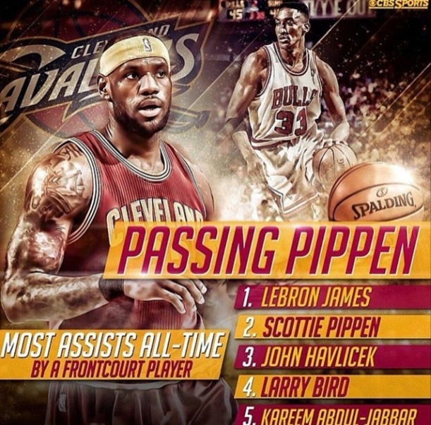 ▶ 오늘 경기에서 11어시스트를 추가한 르브론 제임스는 역대 포워드 어시스트 부문에서 스카티 피펜을 제치고, 1위에 올라섰습니다. 제임스의 현재 통산 어시스트 개수는 6,142개입니다.