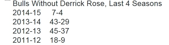 ▶ 위 기록은, 지난 4년간 로즈가 결장한 경기에서 CHI의 성적입니다. 로즈의 빠른 쾌유와 건강한 복귀를 기원합니다.