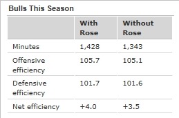 ▶ 다행스럽게도 이번 시즌 CHI는 로즈가 뛰었던 경기와 로즈가 없었던 경기에서 그렇게 큰 차이는 보이지 않고 있습니다.