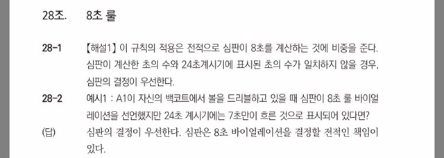 - 결과적으로 샷클락 보다는 심판의 카운팅이 우선한다는 것을 말씀드리겠습니다. 그러니까 샷클락 상 8초가 지났음에도 왜 바이얼레이션을 안불지라고 생각하실 필요가 없다는 것이죠.