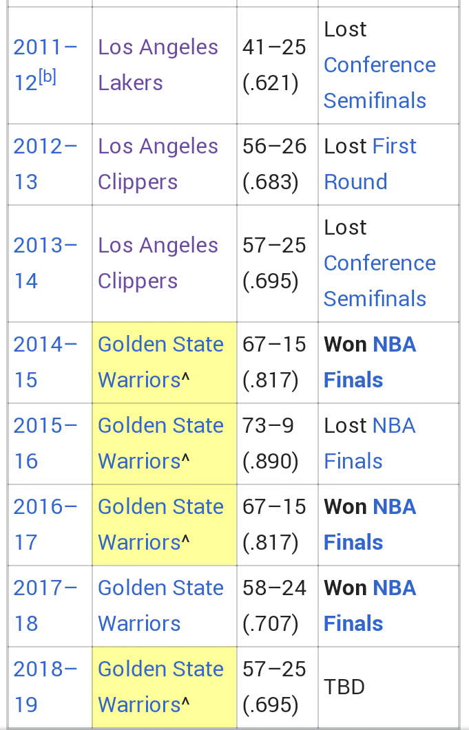 클리퍼스 마지막 디비전 타이틀은 2014년 이었네요..