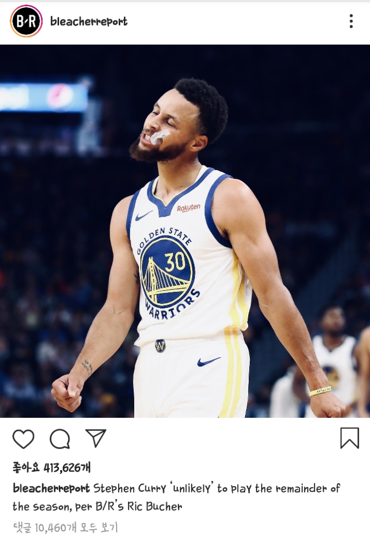 커리가 잔여 시즌 결장할 가능성이 있다는군요.