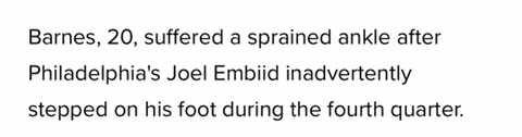 스카티 반즈는 1차전에서 당했던 발목 부상
