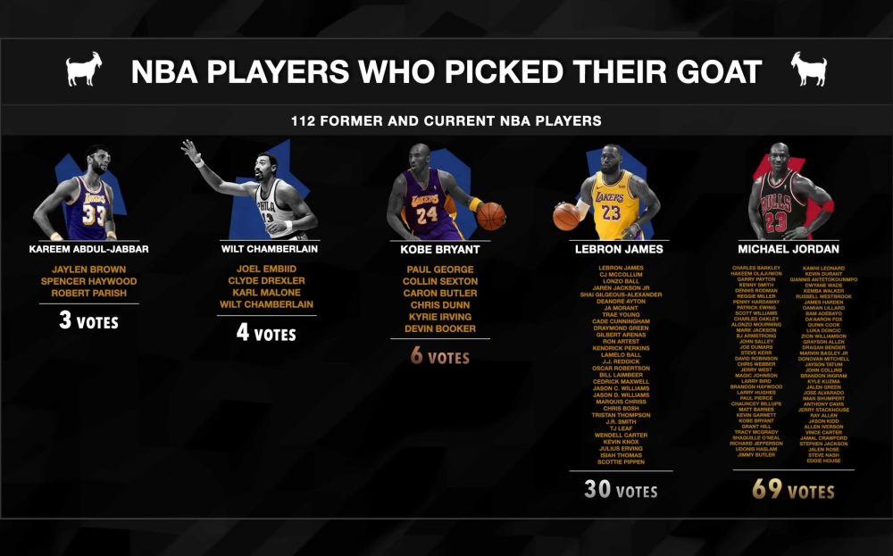 112명의 NBA 전현직 선수들의 GOAT 선택