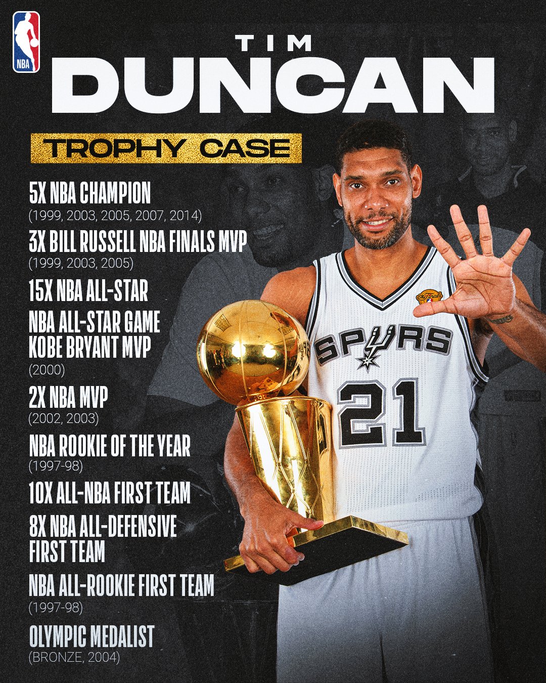 - 5× NBA champion (1999, 2003, 2005, 2007, 2014)