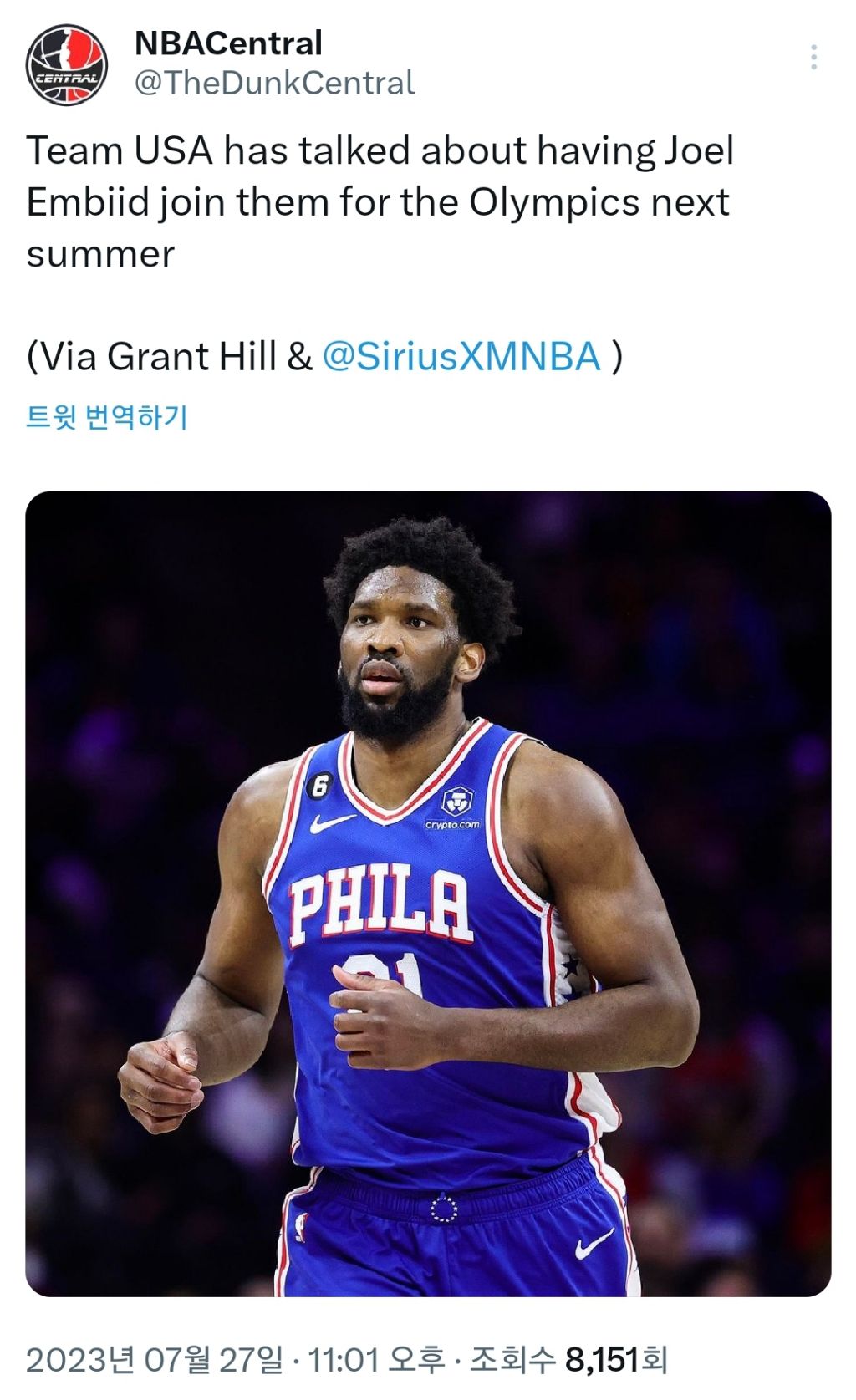 다음 올림픽 미국 대표팀으로 참가하는 것에 대해 대화한 팀 USA 작성자샌반야마|작성시간23.07.27|조회수1,399 목록 댓글 0 글자크기 작게가 글자크기 크게가 엠비드가 프랑스가 아닌 미국 국대로?.... 다음검색 현재 게시글 추가 기능 열기 북마크 공유하기 신고 센터로 신고 댓글 댓글 0 댓글쓰기 답글쓰기 댓글 리스트