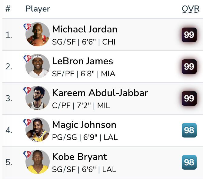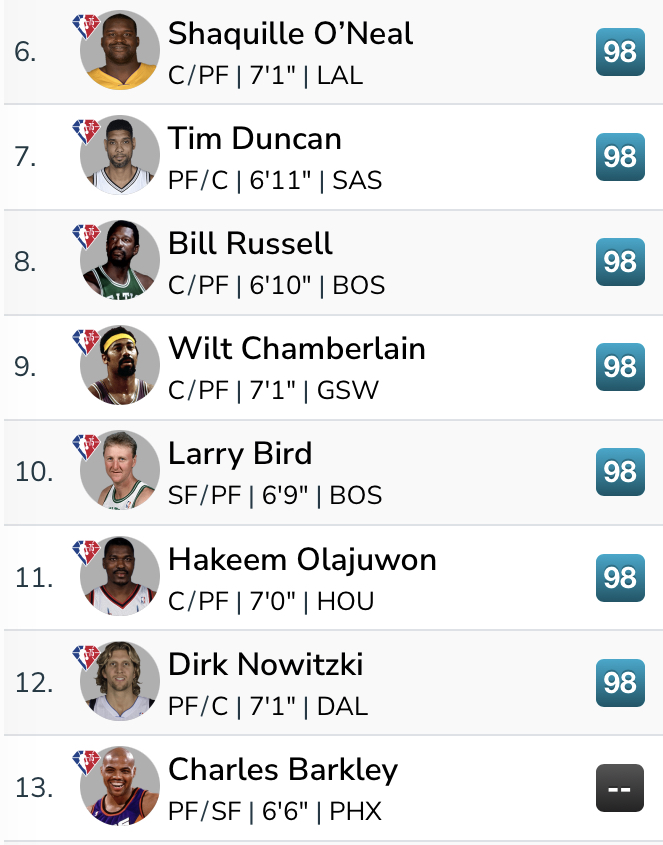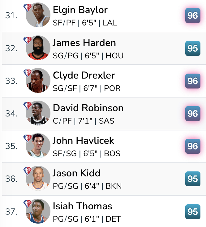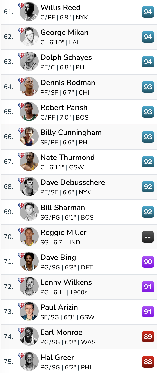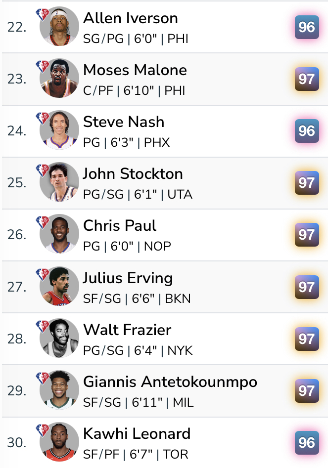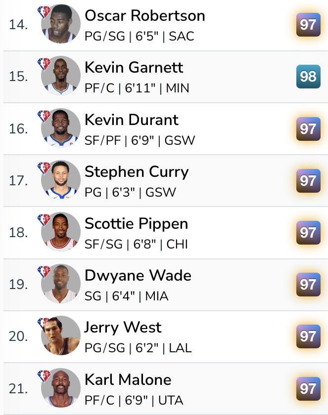 역대 2K레이팅 순위 탑 75 - 순위를 바꿔야 되거나 과대평가나 과소평가가 된 선수는?