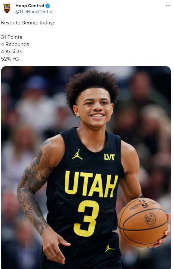 유타 루키 키욘테 조지 오늘 경기 스탯 작성자Melo|작성시간24.03.03|조회수1,147 목록 댓글 1 글자크기 작게가 글자크기 크게가 31득점, 4리바운드, 4어시스트. 팀 내 최다 득점이고, 가장 많은 출전 시간과 공격 시도를 했네요. 이번 시즌 좋은 루키들이 많습니다. 다음검색 현재 게시글 추가 기능 열기 북마크 공유하기 신고 센터로 신고 댓글 댓글 1 댓글쓰기 답글쓰기 댓글 리스트 작성자HEATShaq32 | 작성시간 24.03.03 제 2K에서 커리의 단일시즌 3점 성공 기록을 뛰어넘던데.... 기대됩니다. 댓글 전체보기