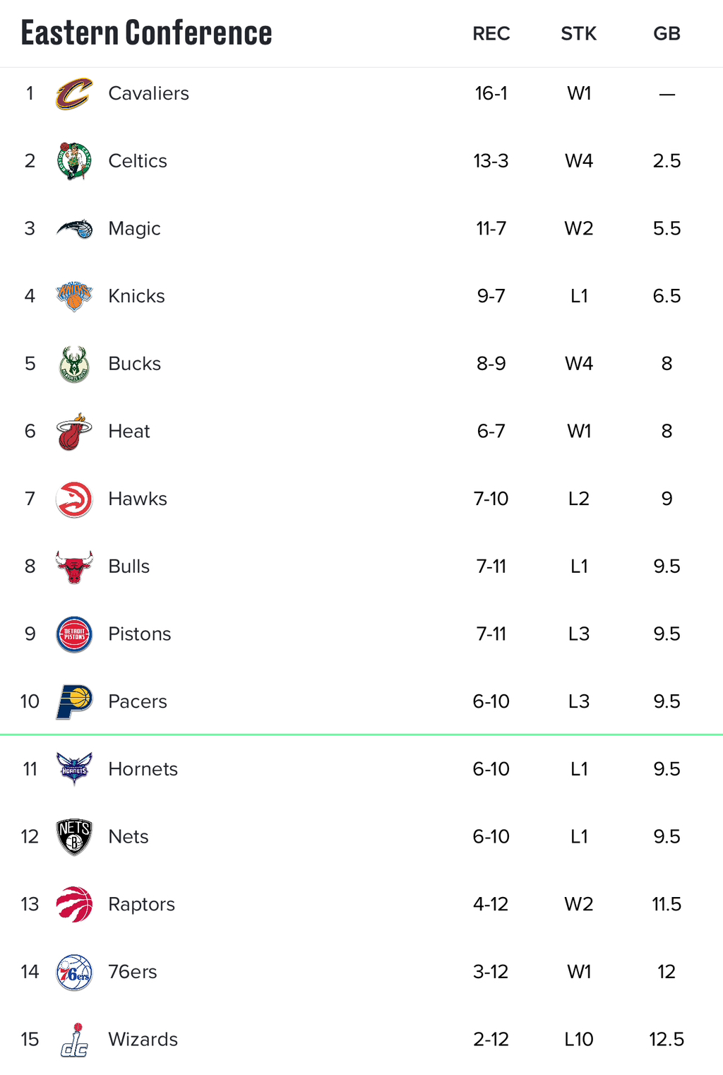 동부 순위