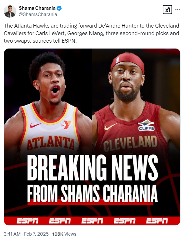 -. 애틀랜타 Get : 카리스 르버트, 조지 니앙, 2라운드픽 3장, 스왑권 2장