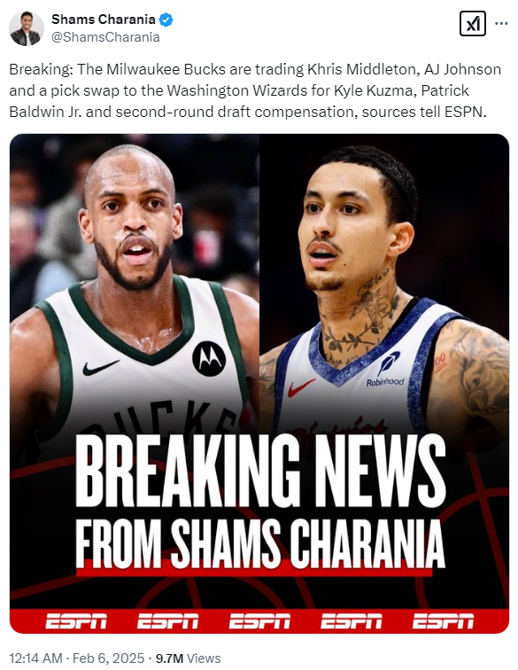 -. 밀워키 Get : 카일 쿠즈마, 패트릭 볼드윈 주니어, 제리코 심스, 2라운드픽