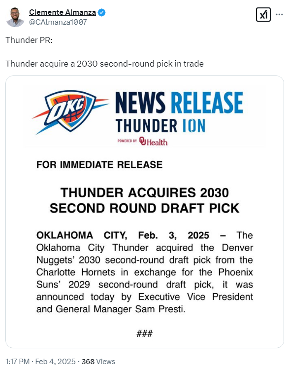-. 오클라호마시티 Get : 2030년 2라운드픽