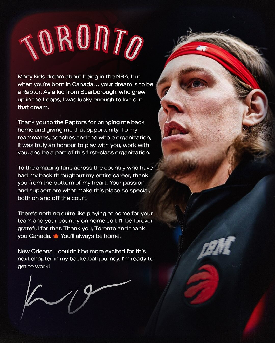 많은 아이들이 NBA에서 뛰는 꿈을 꾸지만, 캐나다에서 태어난다면… 당신의 꿈은 랩터스 선수가 되는 것입니다. 스카버러 출신으로서, 그리고 캄루프스에서 자란 아이로서, 저는 운 좋게도 그 꿈을 실현할 수 있었습니다.