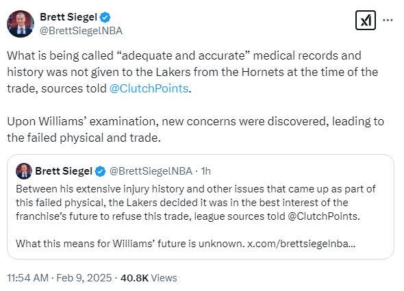 트레이드 당시 적절하고 정확한 의료 기록을 레이커스에 제공하지 않음