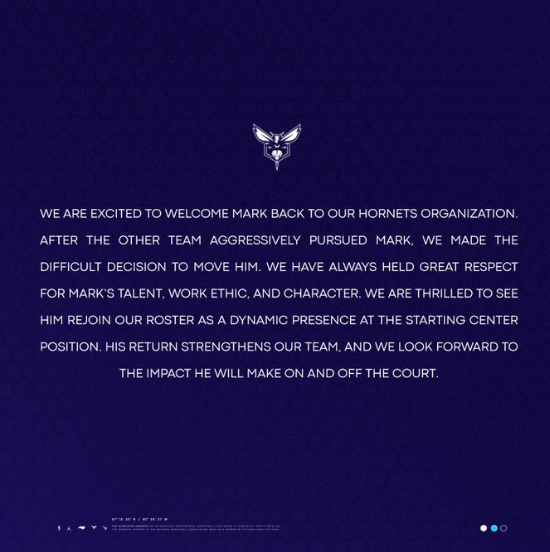 우리는 마크를 다시 우리 샬럿 호네츠 조직으로 맞이하게 되어 기쁩니다.
