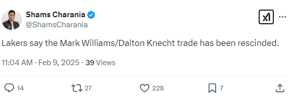 마크 윌리엄스가 신체검사에서 여러 문제를 보여서 트레이드 취소됨