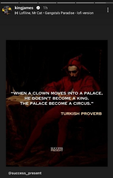 해당 발언 기사가 나온 후에 인스타스토리를 남긴 르브론 제임스