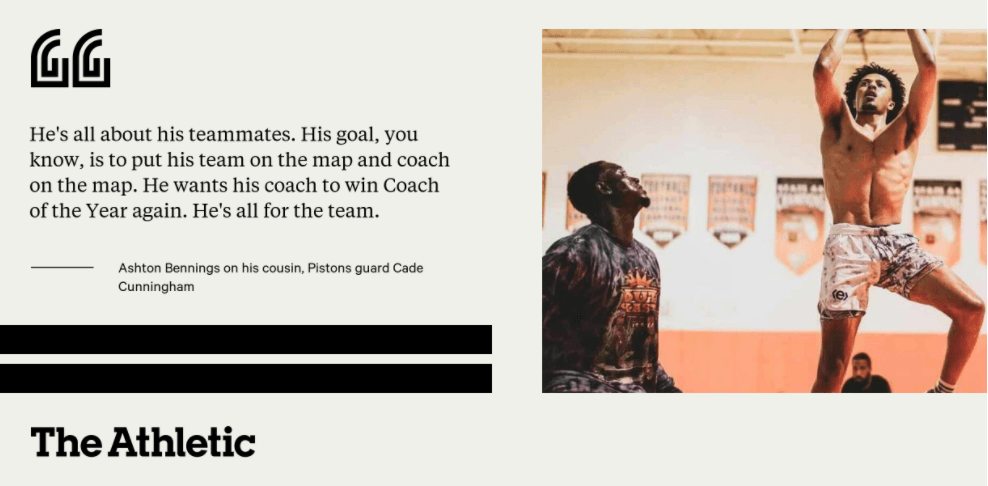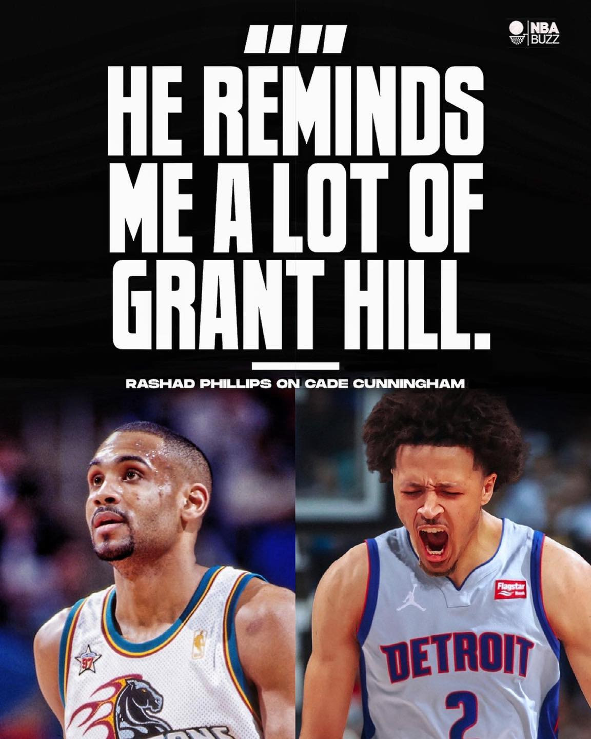 케이드 커닝햄은 플레이스타일상 BQ, 플레이메이킹,수비력이 뛰어나고, 미드레인지를 주무기로 삼고 언제든 트리플 더블이 가능하다는 점에서 당대 피스톤즈 슈퍼스타 그랜트 힐을 연상시킵니다.