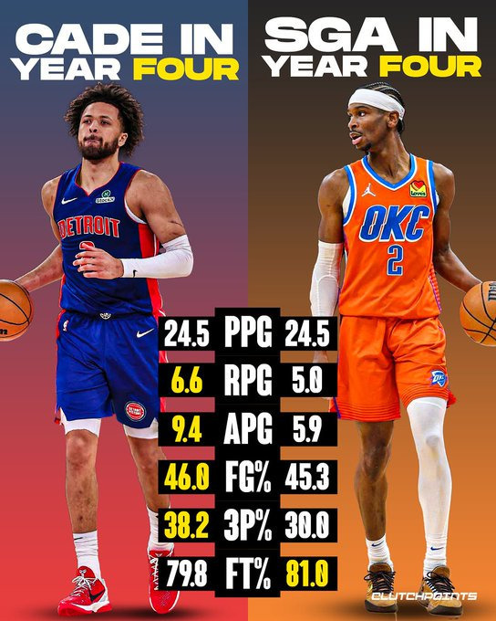 올해 가장 유력한 MVP 후보인 샤이 길저스 알렉산더의 4년차와 상당히 비슷한 스탯을 보이고 있는 등 NBA 차세대 슈퍼스타로서 기대가 되는 케이드 커닝햄을 응원합니다.