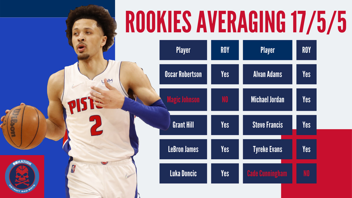 17 / 5 / 5라는 스탯을 가지고 신인왕을 놓친 사례는 역대 한 번(매직 존슨)밖에 없었기 때문에 일각에서는 전반기 임팩트는 떨어졌으나, 최종 스탯과 후반기 모습을 보면 신인왕은 커닝햄이어야 했다고 주장하는 이들이 디트로이트 팬 뿐만 아니라 미국 농구팬들 사이에서 언급이 되었습니다.