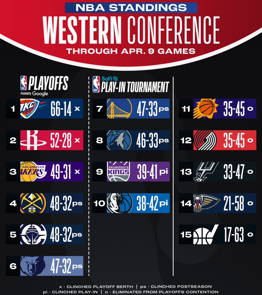 작성자Webber Forever 작성시간 25.04.10 서부는 진짜 중상위권 살얼음판 승부